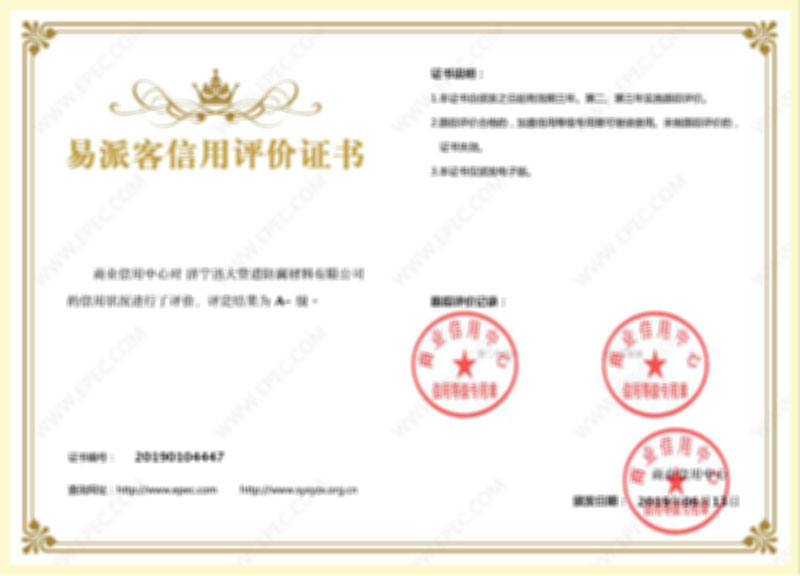 易派客信用评价证书...